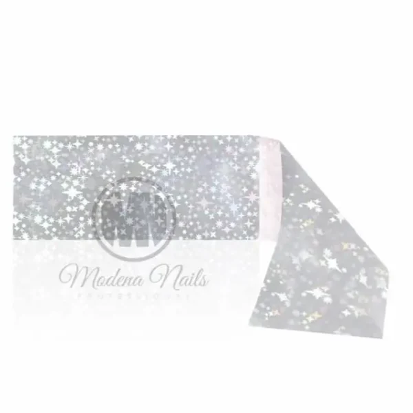 Srebrna transfer folija s uzorkom zvjezdica, u listovima, dimenzija 120x4cm.